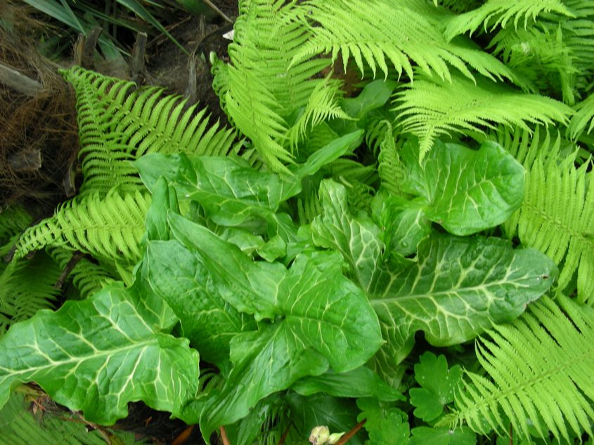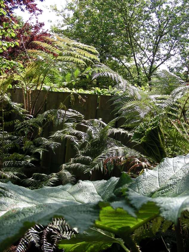 De canna's willen nog niet erg, maar de tuinvarens gaan als een speer . Dit zegt ook iets van het weer De darmera is niet te stuiten. Ook de bamboe gaat goed. (Phyllostachys aureosulcata Aureocaulis) groet Arno
