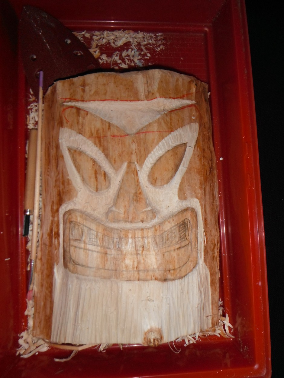 van plan een paar tiki totems te maken. Dus van de week maar een proef stukje gemaakt