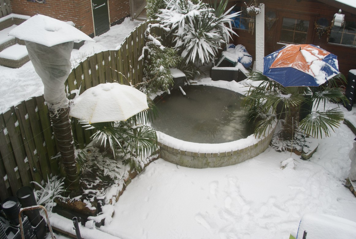 Mooi, het positieve eraan, gratis extra isolatie voor de planten tegen de vorst ;)