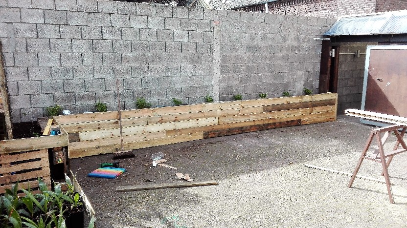 Is het geheel compleet uit gerecycled palletmateriaal gemaakt?