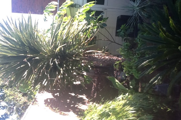 De planten staan er prima bij, in deze tuin is in het verleden een moestuin geweest, en er zijn kippen gehouden. Dus een prima basis voor een gezonde exotische tuin.