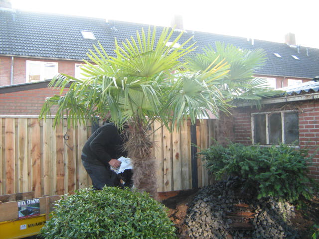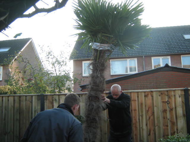 Morgen komen 4 of 5 palmbomen met een stam van minimaal 1.80 meter. Dat wordt een mooi palmboom bosje achter in de tuin
