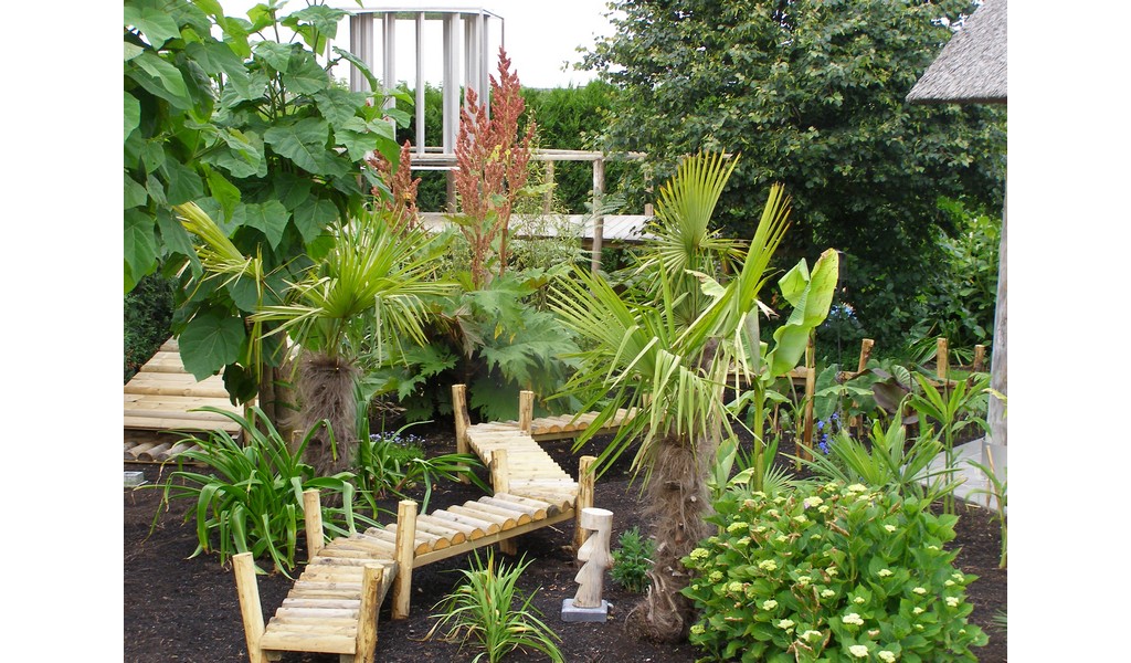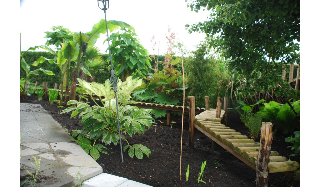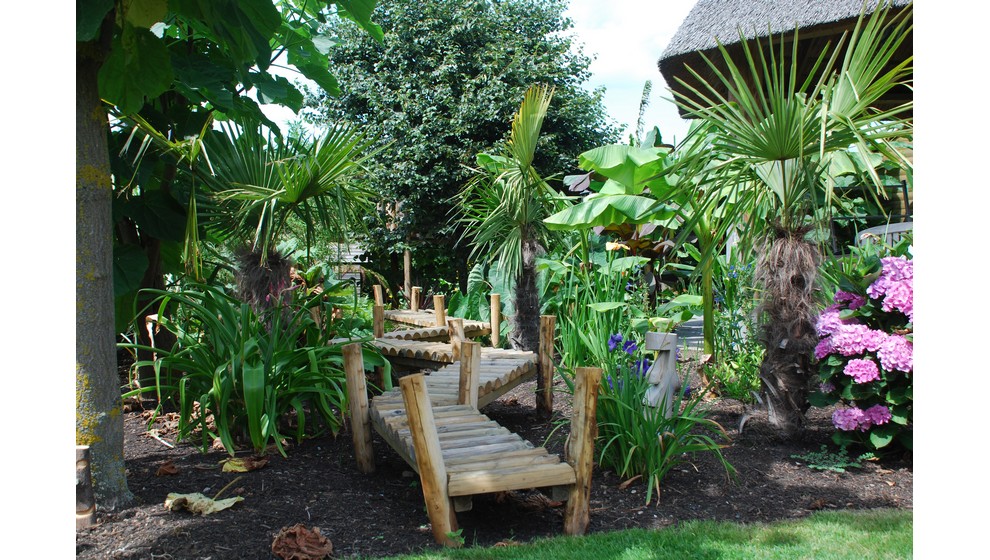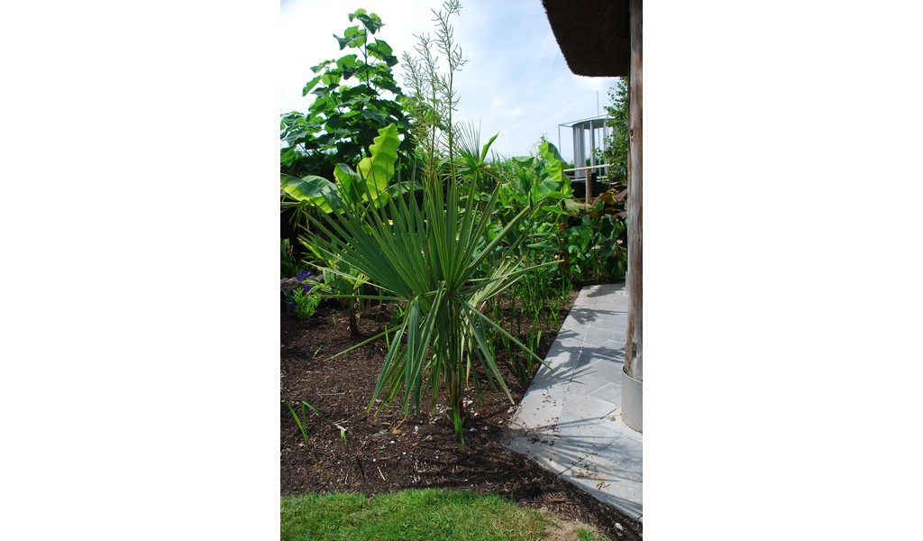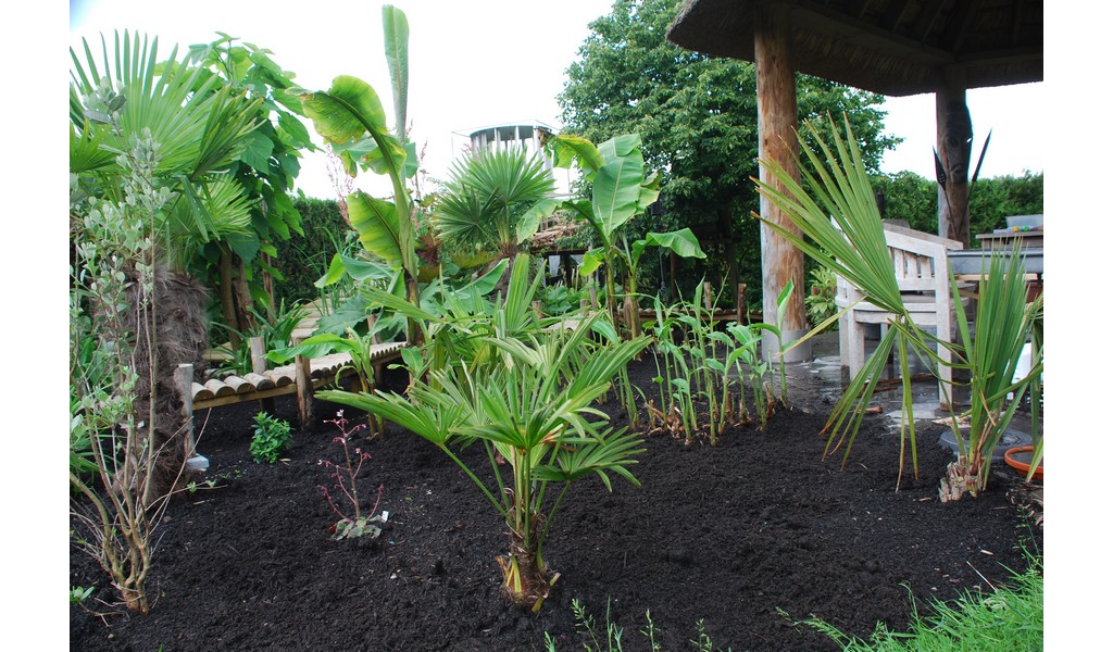 De Soorten van planten die er nu staan zijn niet zo speciaal, maar ze maken er wel een exotisch geheel van.