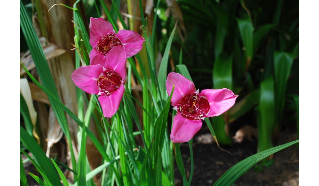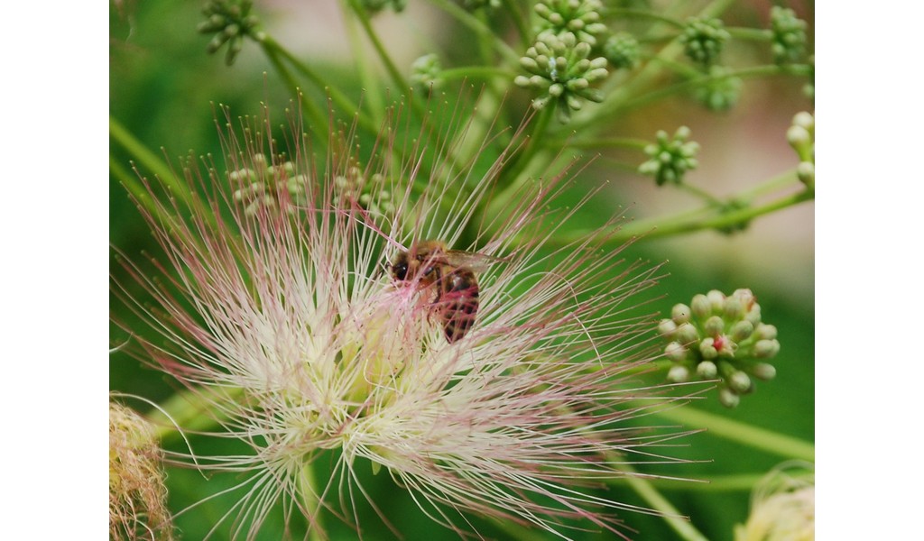 De Albizia staat nu in volle bloei, en de tigridia's en Colocasia's zijn met de bloei gestart..