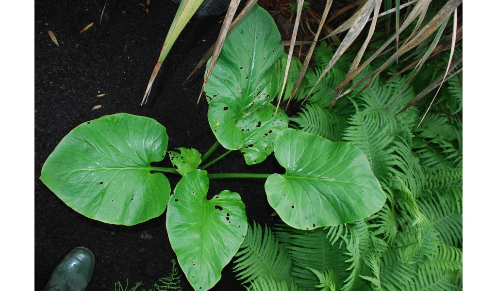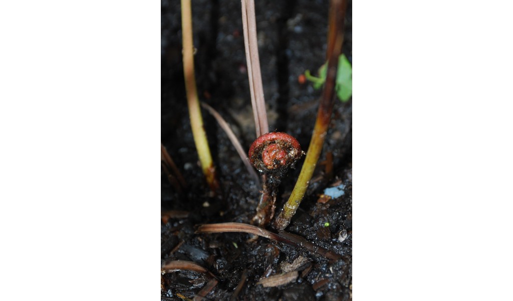 Cardiocrinum giganteum van dit jaar uitgeplant. eentje heeft blad zoals het zou moeten en de andere gaat de hoogte in? waarschijnlijk een bloem.