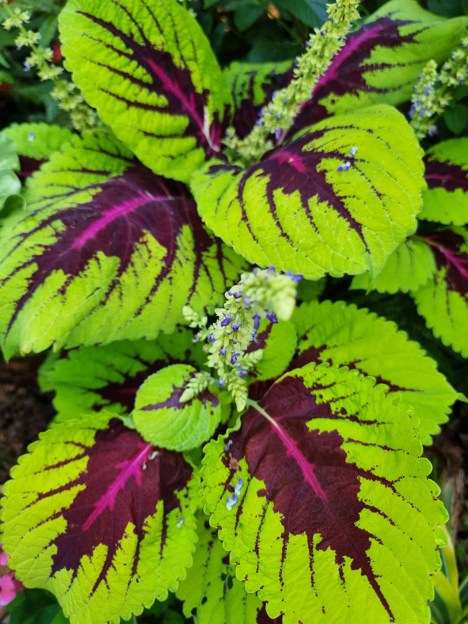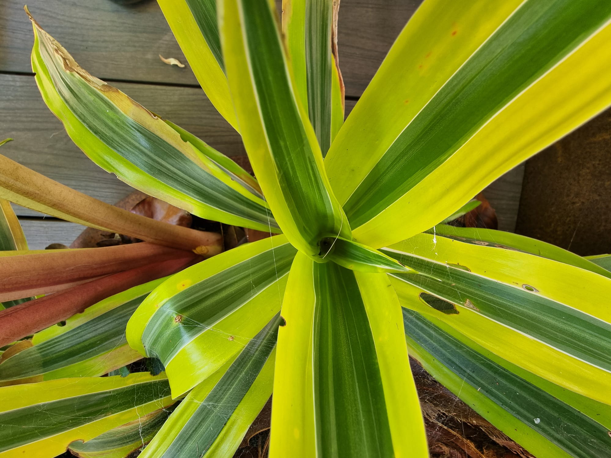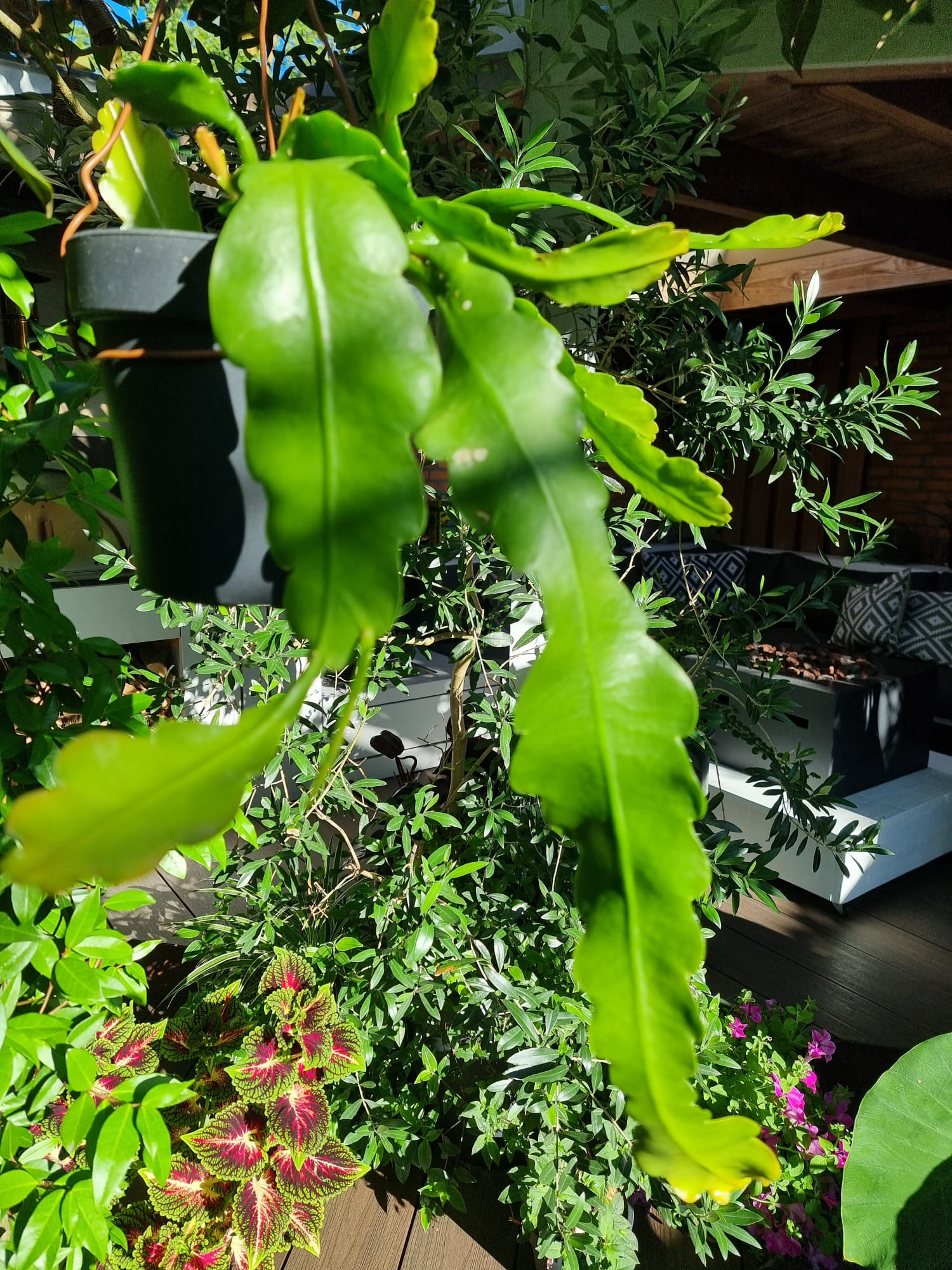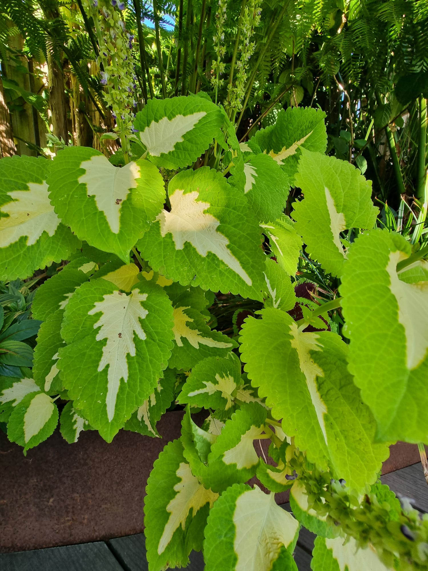 Inmiddels zijn we vijf jaar verder. Als ik dit topic zo doorlees dan is er veel veranderd. De tuin heeft drie jaar geleden een complete make-over gekregen, maar heel veel palmen staan nog op dezelfde plek als voorheen. Alleen zijn deze minimaal 1,5 m hoger geworden Trachycarpus fortunei, princeps, princeps New Form, ukrhulensis, wagnerianus) of 20-30 cm dikker (Phoenix, Jubaea) of drie keer voller (Chamaerops, Thritrinax, Rhapidophyllum). Het blijft een uitdaging zoveel soorten te herbergen in een relatief kleine tuin en het toch ruimtelijk te houden. Nu ik bij de trachcarpussen onder de kroon door kan lopen met mijn 2 m, schept dat geleidelijk ruimte voor andere soorten. Groot voordeel is dat bescherming ook redelijk goed te regelen is als alles zo dicht bij elkaar staat. Ik ben er ook best trots op dat ik in al die jaren eigenlijk geen verliezen heb. Alles komt in de regel netjes uit de bescherming en dat zie je ook terug in de groei. Veel van wat je ziet op de foto's staat in de vollegrond, op een aantal bloeiende planten in kuipen na. Het zijn dan wel geen septemberplaatjes, maar augustus is al een heel eind voorbij en nu heb ik even tijd.