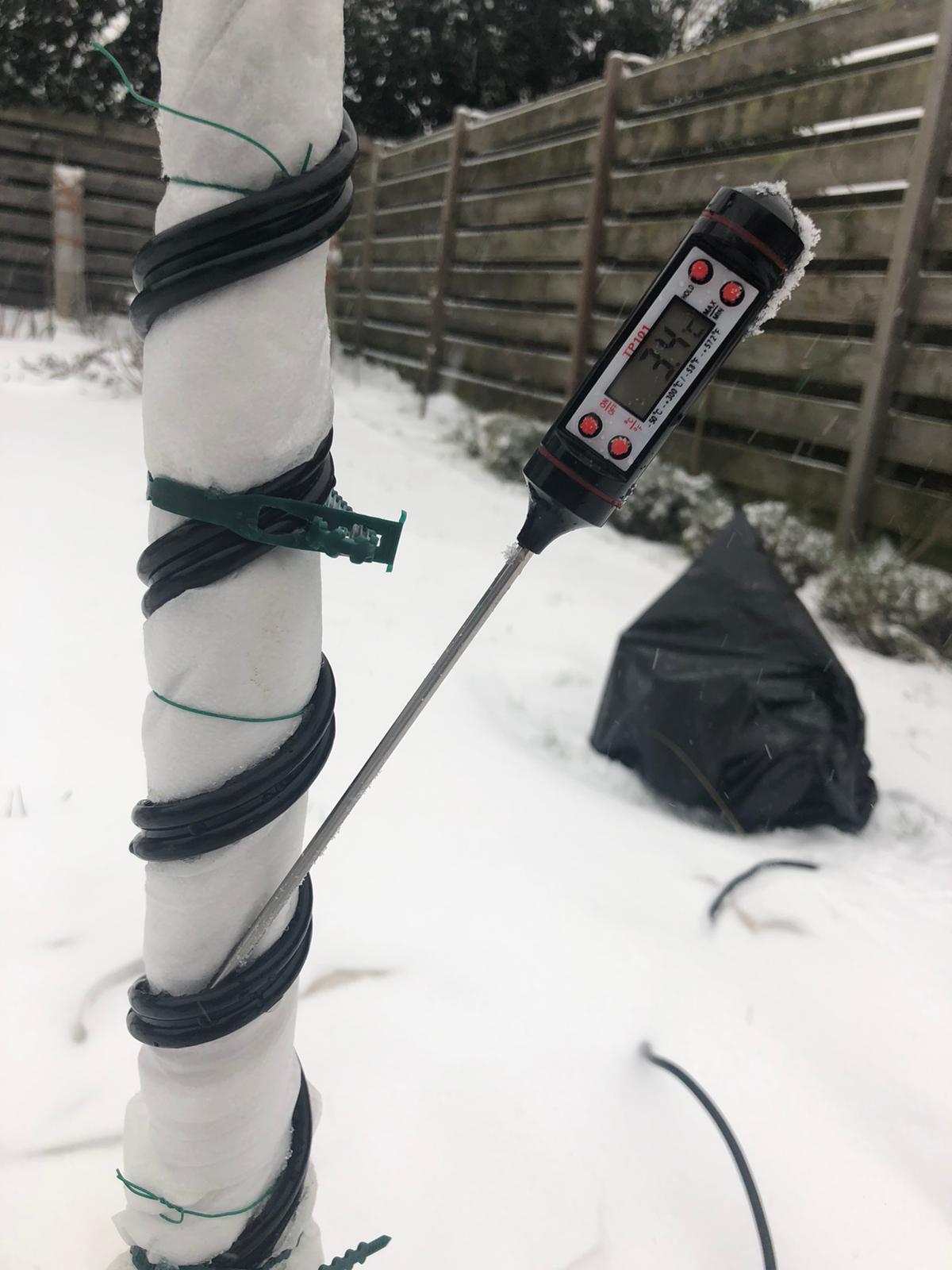 Het probleem bij wintergroene planten is vooral de gevoelstemperatuur. De temperatuur in de bescherming is hier gelijk aan de gevoelstemperatuuur.