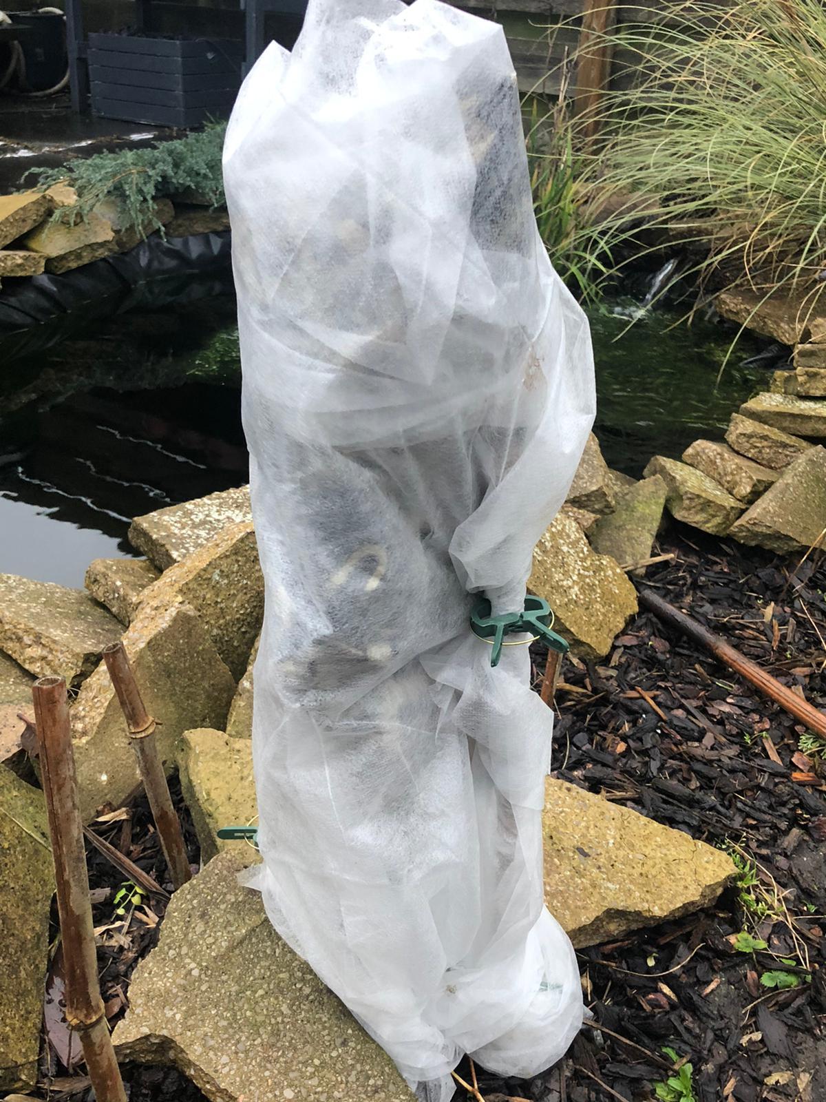 De Chaemerops gaat het met deze bescherming niet redden denk ik. Misschien verrast hij me.