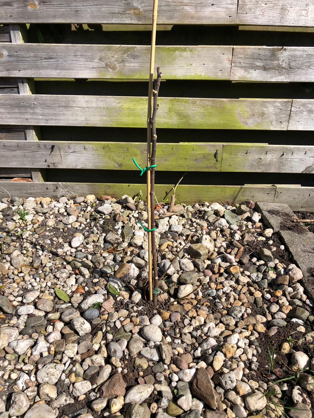 Op de plek waar de Ensete vorig jaar zat heb ik nu een vijgenboom aangeplant. Deze ga ik stamvormig kweken. Vind dit knapper dan in struikvorm.