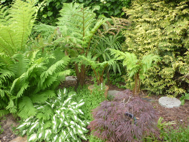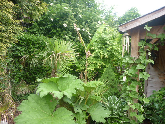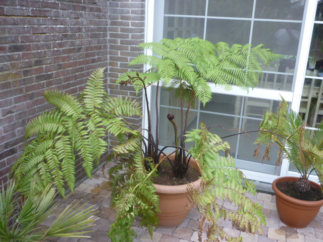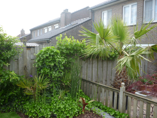 Heel mooi! Leuk om even in je tuin te mogen kijken... Wat een enorme Washingtonia trouwens (en wat een klein potje waar die in staat ) Heb je die pas gekocht of staat die al lang in die kleine pot?