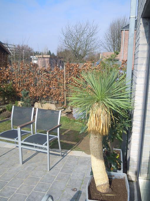 Koen: het is geen Phormium Tenax maar een yucca variegata van het rustieke type. Die kan fameus tegen een stootje winter zonder bescherming.