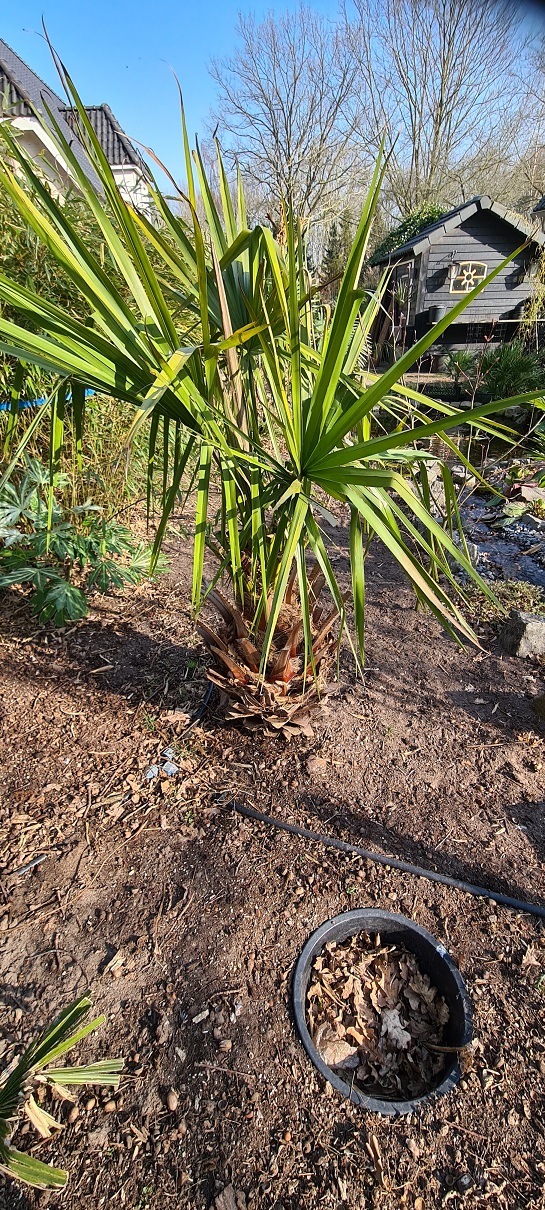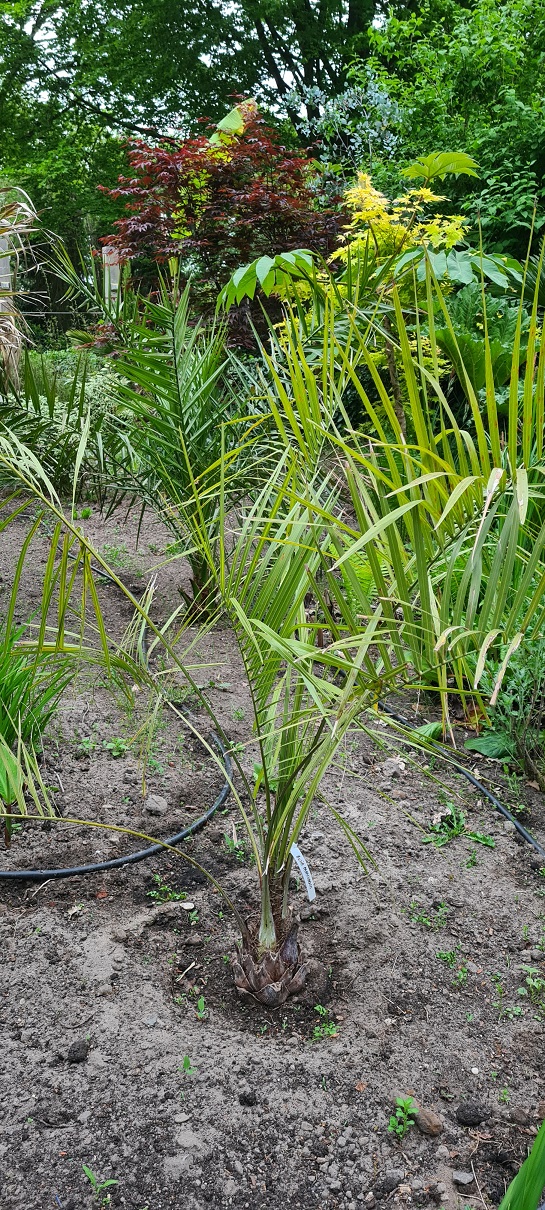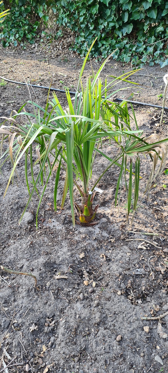 Livistona heeft zich eigenlijk al bewezen, want hij kwam probleemloos de winter door, na pas te zijn aangeplant vorig seizoen laat.