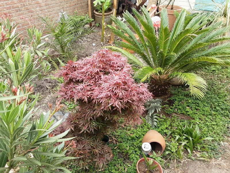 Update tuin mei 2020, met op verzoek van Matko ook de bv recent aangeplante kleine Phoenix Canariensis.