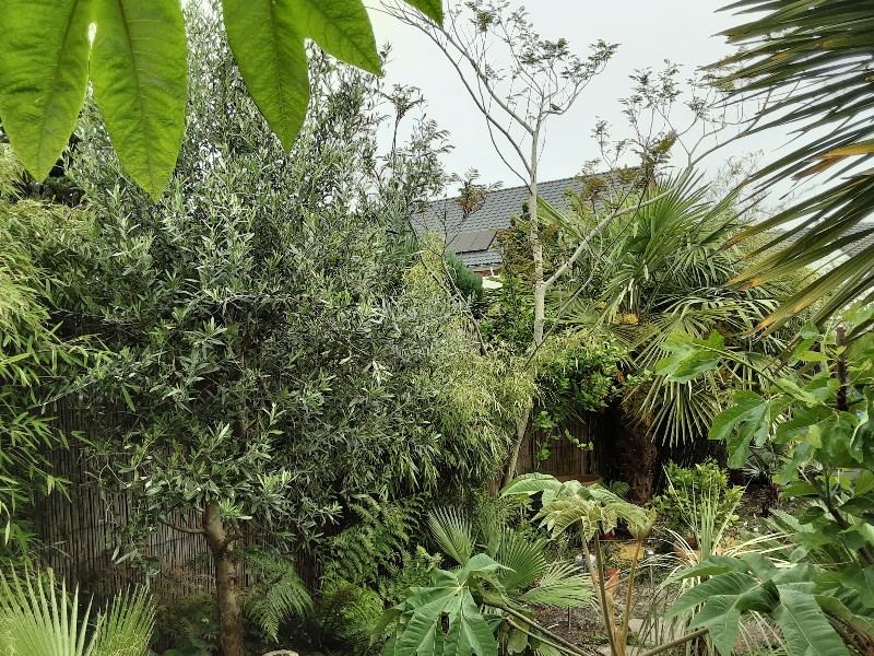 Nog maar eens een poging om te laten zien hoe groot de Cordyline hier inmiddels is.