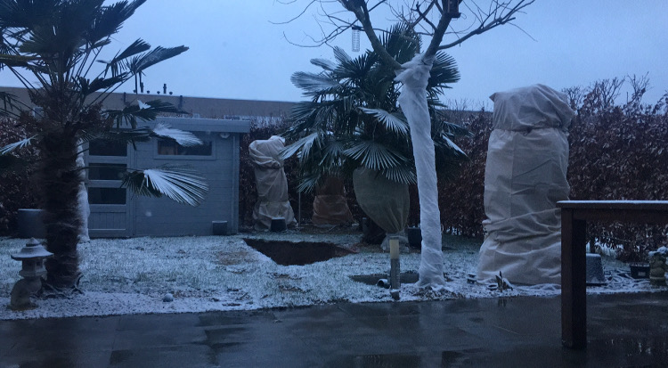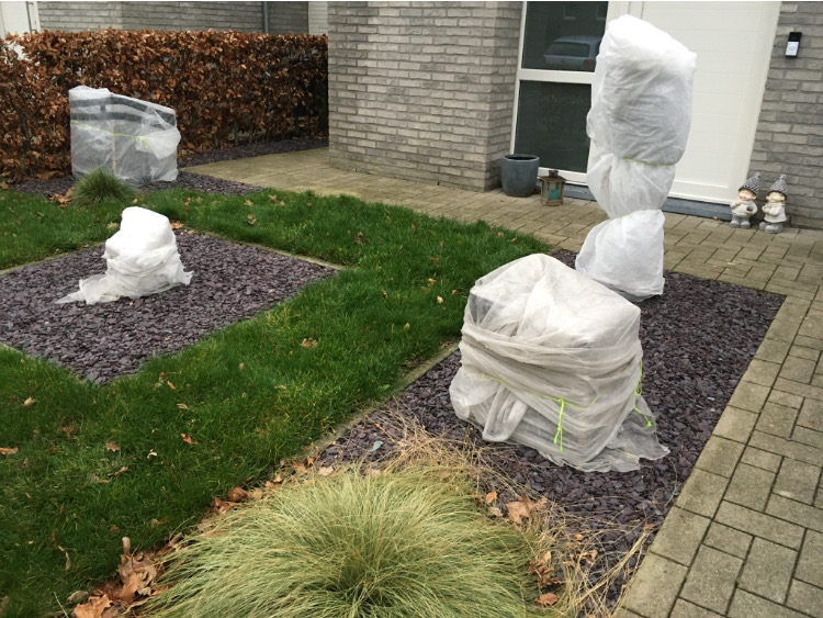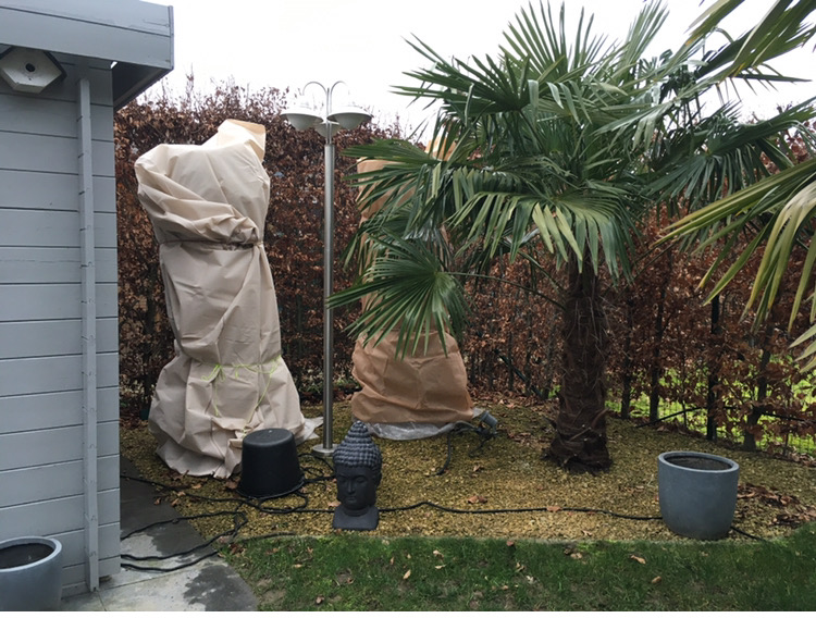 de boomvarens zaten al in de winterbescherming maar heb er nog een extra hoes over gedaan