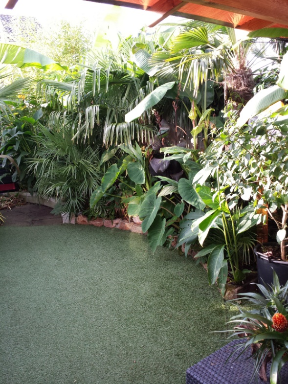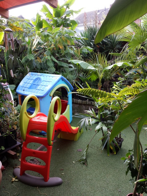 Dat gaat nog wel even duren Patrick . Onze jongste dochter is nog geen twee en het is dus nog erg praktisch. Een uur of twee na dat het geregend heeft is het tapijtje weer droog . Maar als het er uit ga komt er ook geen gras terug. Ik zit meer te denken aan flagstone pad naar achter met wat brede en smalle stukken .