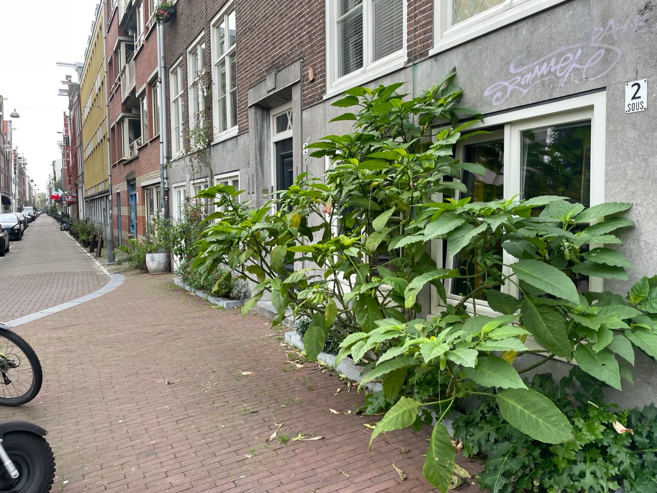 Nauwgezet bekeken: hij staat tegen de rood bakstenen muur, 100% zuid, 100% beschut tegen noord en oostenwind met een kleien beetje overhead beschutting.