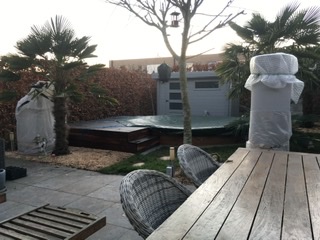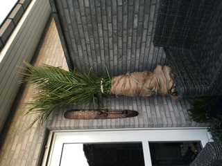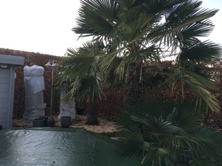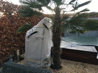 Alles is terug beschermd en alle potten terug binnen en de Phoenix opgebonden en wat bescherming aangebracht en lichtslang er rond en tegen de zuidmuur van de woning geplaatst
