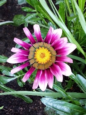 De zelfde kleur lantana staat hier ook met het verschil dat die door de zon bijna geheel roze is bijna zonder geel...