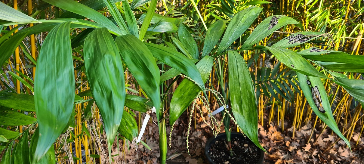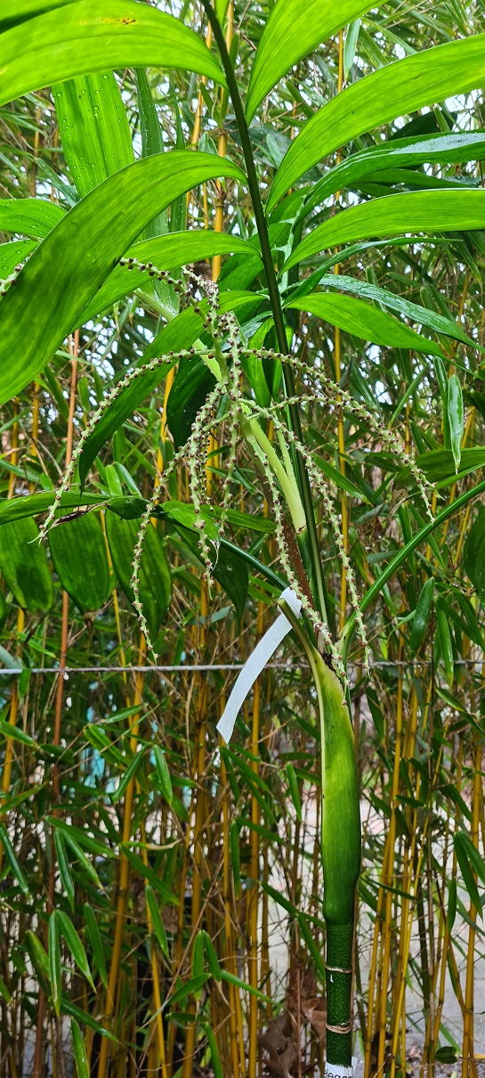 Gewoontegetrouw zijn de diverse Chamaedorea inmiddels ook weer aan hun bloei cyclus begonnen, die zo lijkt het word getriggerd door een drogere periode (binnenshuis).