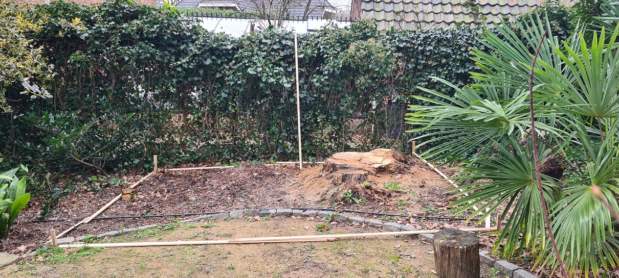 Plek uitlijning nieuwe pergola.