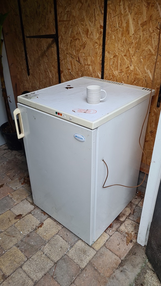 Oude afgedankte vriezer + warmte kabel 25W --> bijna 28°C (in de schuur buiten die op 2-3° hangt...)