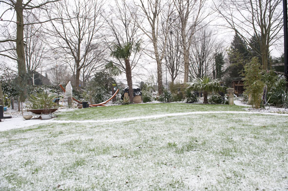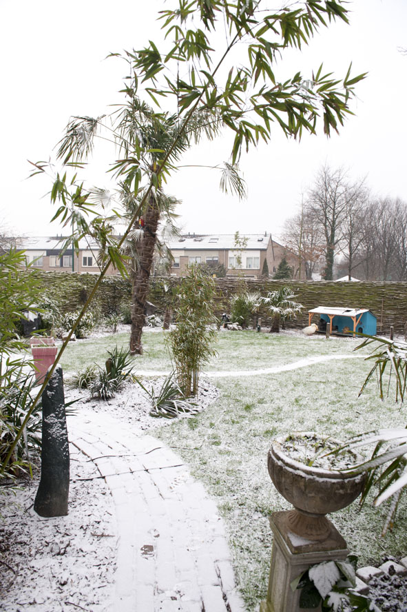 Hier komen ze dan, onze tuin in de sneeuw.