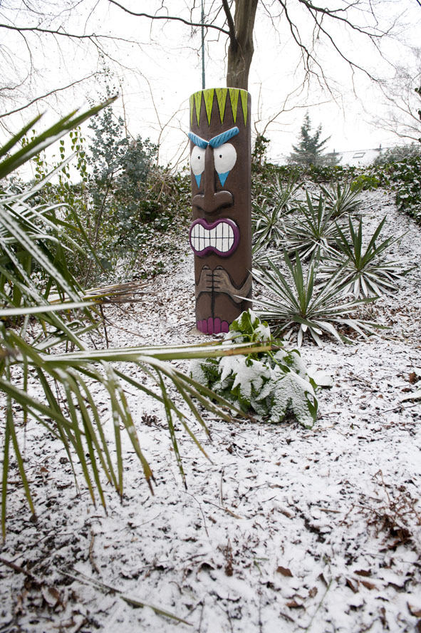 tiki in de sneeuw