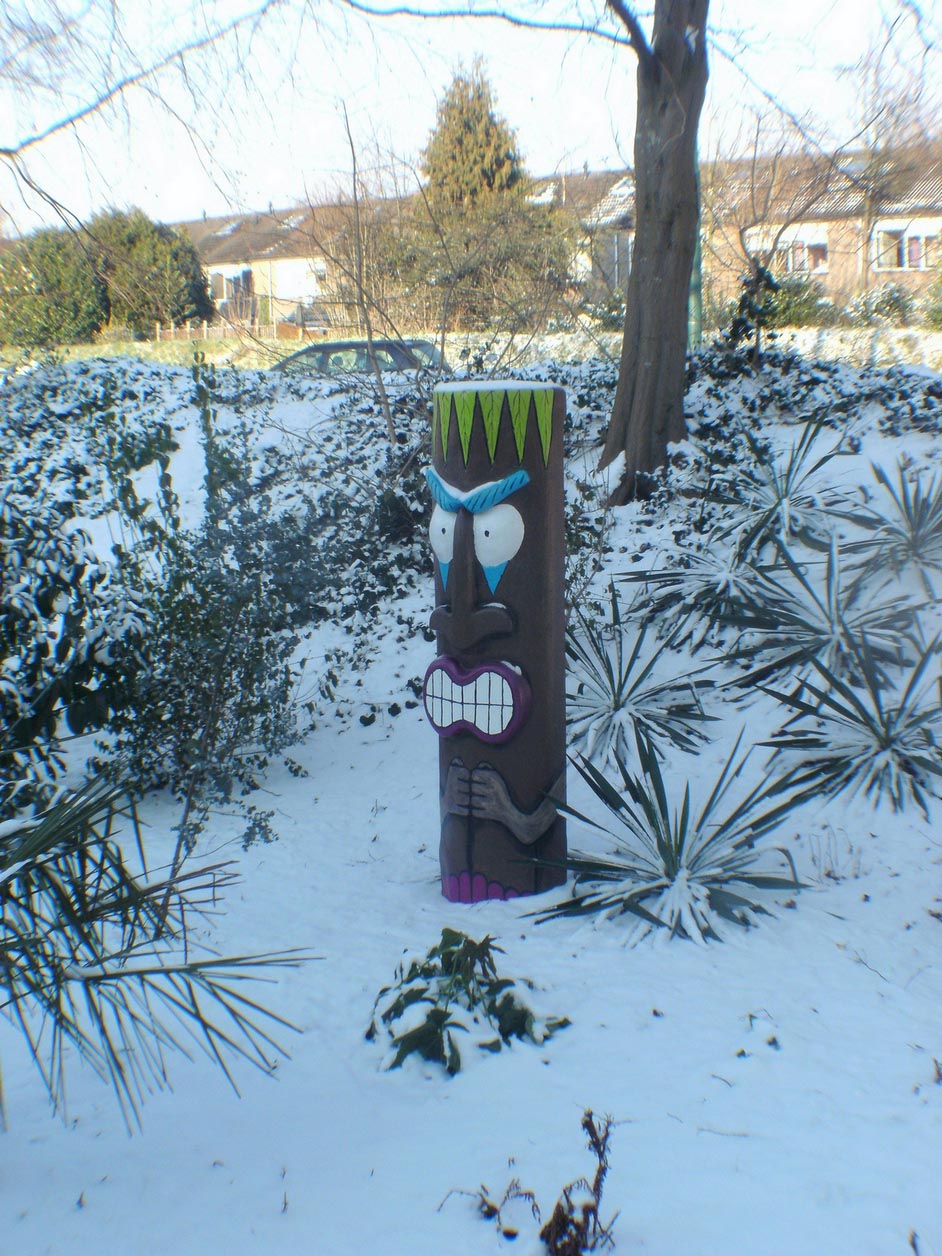 haha moest even denken wat je nou bedoelde met beschilderde boomstam, maar je bedoeld de tiki... :D