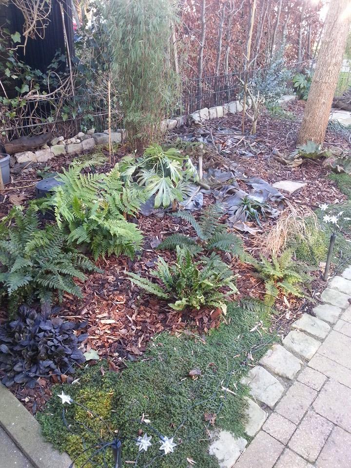 Omdat ik heel veel planten van mijn ouders heb gekregen en die ook even verantwoord kwijt moest, heb ik maar wat zakken bemeste tuinaarde op die natte kuil gegooid en de planten er in gezet, waarvan morgen visueel akte