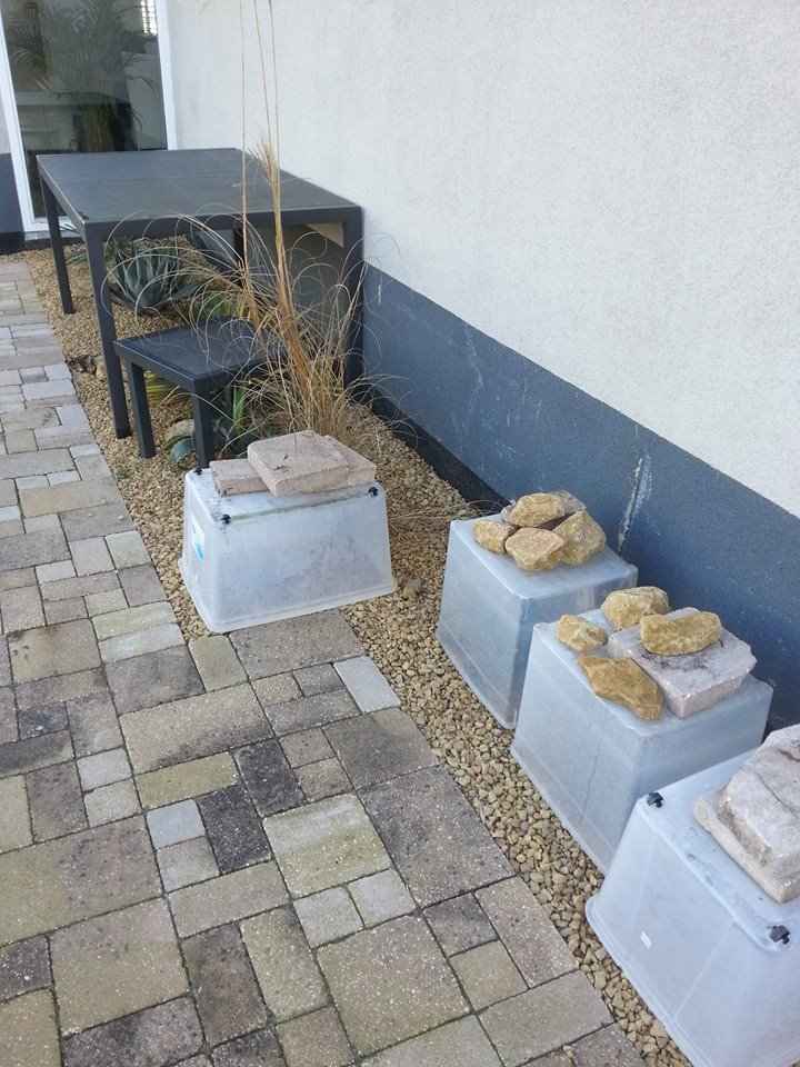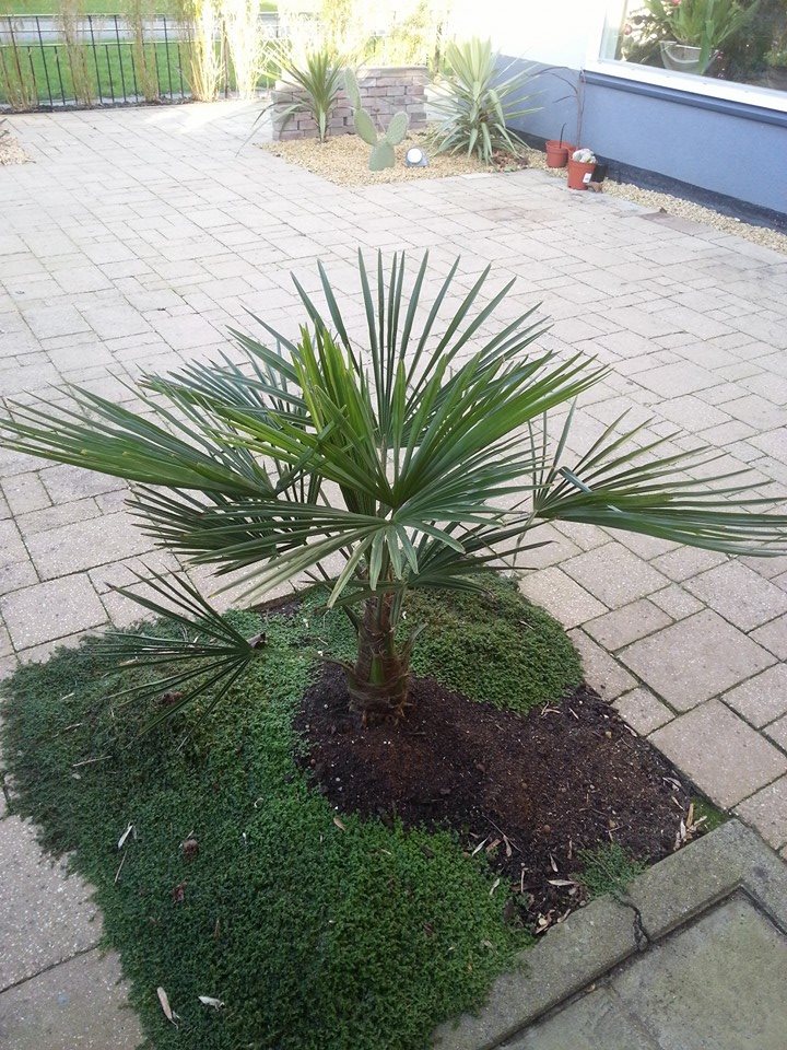 Omdat ik de voortuin te laag vind liggen, moet ik wachten tot het voorjaar om die Trachys op te wippen. Deze weken was de voortuin één groot moddergevechtbad