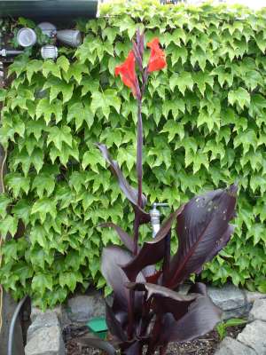 nog een paar tuin foto's,de canna indica in bloei