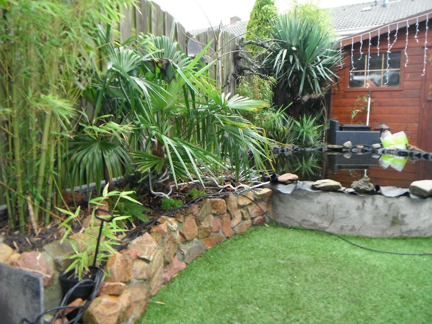 Wow wat een plaatje van een tuin zeg echt heel mooi. Maar ik vind alleen de rand van de vijver jammer. Ik zou er een mooie rand opmaken of moet dat nog gebeuren verder echt een topper van een tuin zeg :thumb_up: