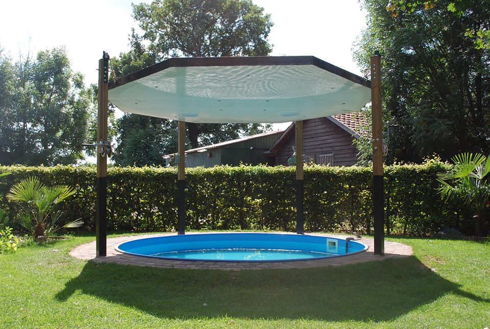 Zoals ik in de begin post al zei moest er een afdekking komen op het verwarmde bubbelbad ter bescherming van mijn dochter. Die is er dan ook gekomen en toen ik toch bezig was en het duurder ging worden dan ik dacht, dacht ik laat ik eens helemaal los gaan. Het resultaat is een dak die omhoog gelierd word met ingebouwde spots en waterdichte boot speakers.