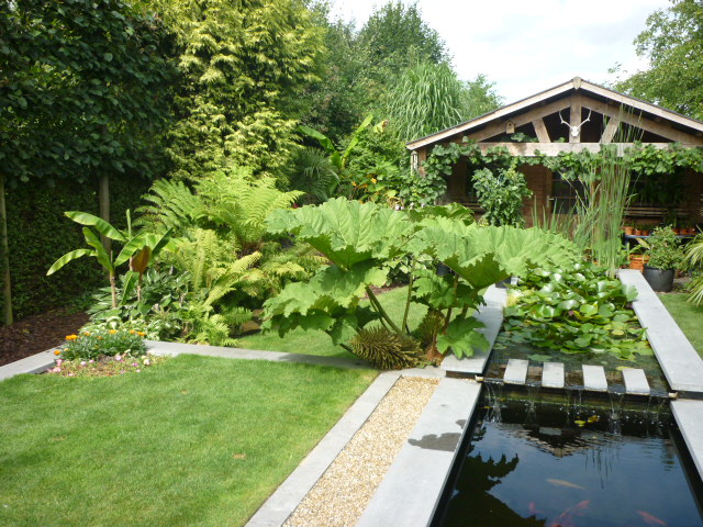 Prachtige tuin, vooral die Gunnera. Op de een of andere manier willen die hier niet aanslaan, al 3x geprobeerd met een klein plantje maar kwijnen allemaal weg.