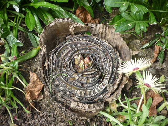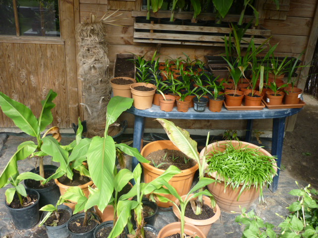 hallo , na het goeie weer is het al terug een ander zicht .de trachys hebben bijna allemaal speerrot gehad maar zijn er op 2 na allemaal terug doorgekomen dus de methode van er zakken over te treken heeft niet zo goed gewerkt volgende winter dan maar met paraplu's werken .van de maurelli s hebben het er vijf laten afwetten gelukkig hebben 2 daarvan puppy's gemaakt het natte voorjaar heeft dus slagtoffers gemaakt en ook puppys hoopelijk volgend jaar beter .eerste maal dat de basjoos bloeien de eene staat in bloei de andere begind en bloem aan te maken jammer dat ze dan afsterven. de nieuwe groote wachgy maakt eindelijk vorderingen na het aanduiden met zwarte stift werd het duidelijk dat er groei in zat (even bang geweest na verkleuring van de bladeren)