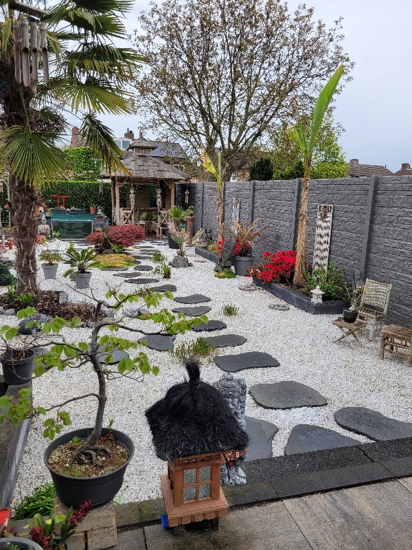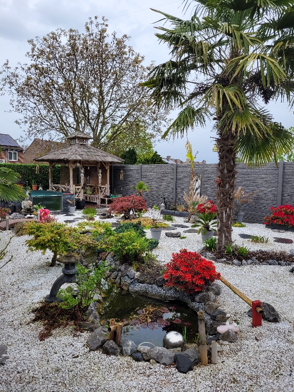 Het is natuurlijk ook geen Japanse tuin, het enige wat Japans achtig is is de rode poort en 1 pagode. Rest van de tuin is wat meer een mix van bali-oosters.
