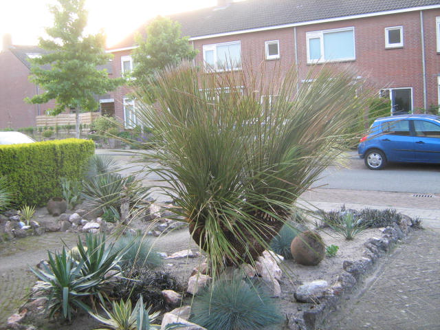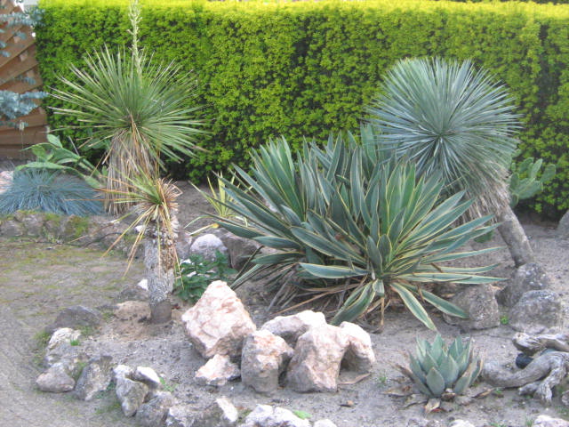 mooie voortuin met die agaves neem aan dat die mediopicta swinters binnen staat