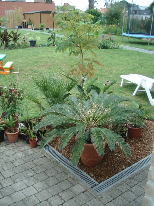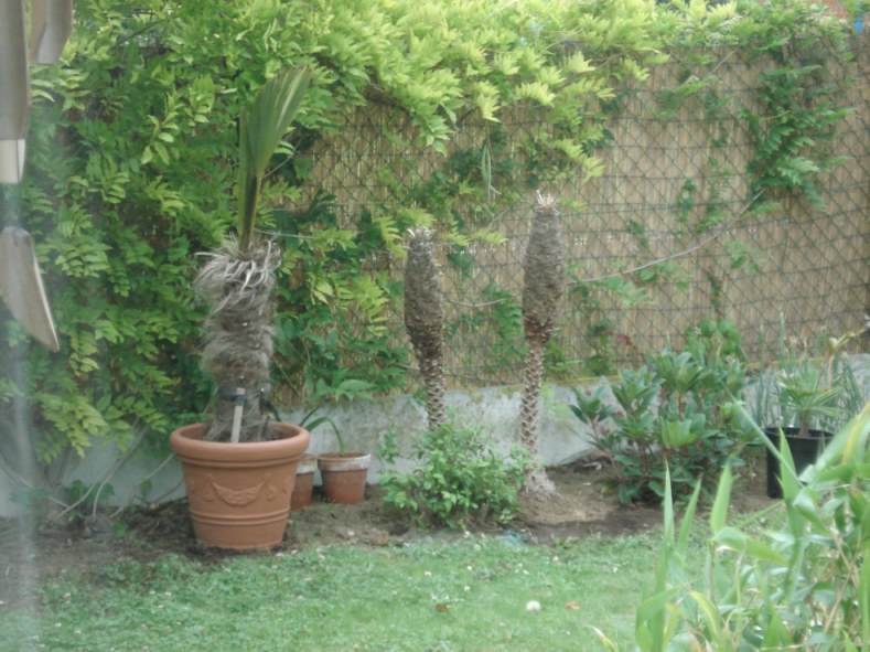 Gisteren van het mooi weer geprofiteerd om de laatste 2 Chamaeropsen in de borders te zetten.