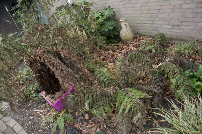 Ik zal morgen eens wat foto's maken, want elke dag kom ik weer wat tegen met vorstschade, vandaag een eucalyptus gevonden die helemaal bruin is geworden, pfff daar wordt een mens niet vrolijk van! Gisteren al begonnen om hier en daar wat varens en fatsia's het dode blad en groeipunten weg te snoeien.