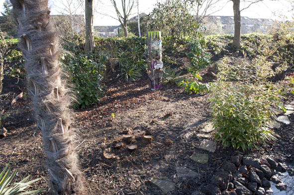 Dank voor jullie medeleven hoor, ik ben alweer een paar dagen een paar uur in de tuin bezig geweest, een heel karwei weer om alles na te lopen, te snoeien en het meeste afgevallen blad en stro ter winterbescherming weg te halen. Maar een groot deel van de fatsia's zijn al gesnoeit, ik probeer elke keer een stuk tuin te doen, ben nog niet op de helft na een uur of 4 in de tuin werken. Maar het is heerlijk om weer in de tuin bezig te zijn en zo zie je ook hier en daar weer planten die gaan groeien. De trachy's hebben eigenlijk allemaal bladschade aan de onderste bladeren maar geen enkele speerrot gelukkig ook de kleinste niet, ze staan ook allemaal in de volle grond.