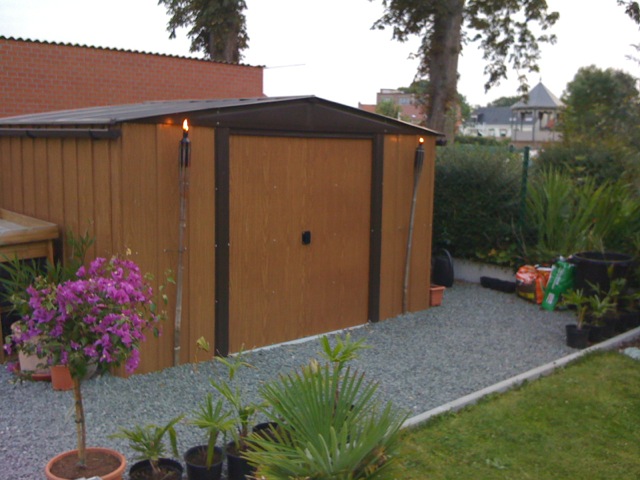 Ik had nog enkele grote tuinfakkels die in de weg stonden.... en zo krijgt het tuinhuis ook ineens iets exotisch. Hoog "expeditie robinson-gehalte" :lol: