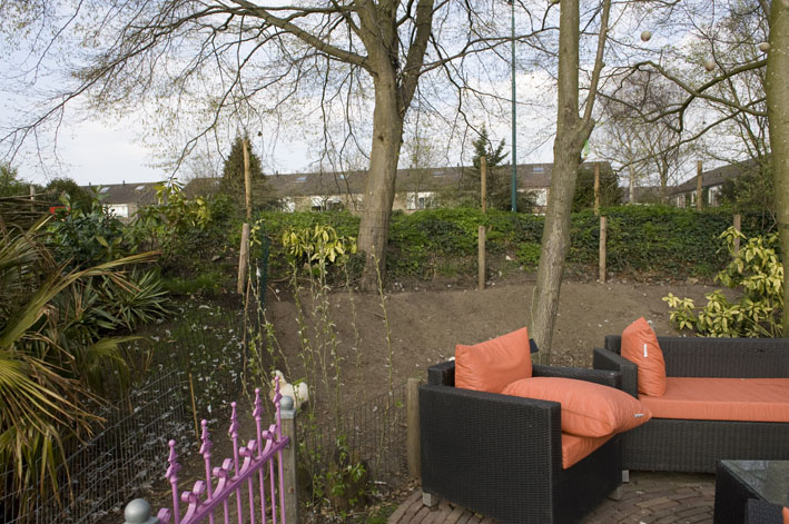 palen die we overhadden heb ik op de wal gezet, daar moet klimop voor een schutting gaan zorgen