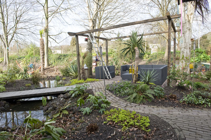 Het bouwsel in de tuin gaat de komende jaren voor het nodige genot zorgen, als ik dat zo bekijk en het ziet er degelijk uit, maar dat is jullie wel toevertrouwd.
