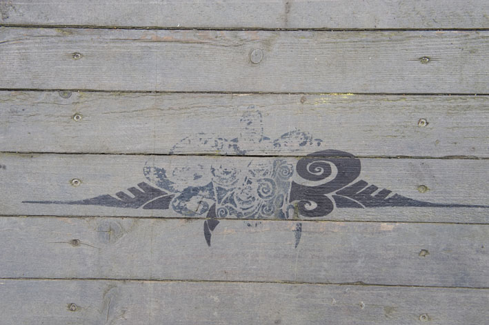 de verf is van het hout afgevroren lijkt wel, ik ga het herstellen met watervaste stift