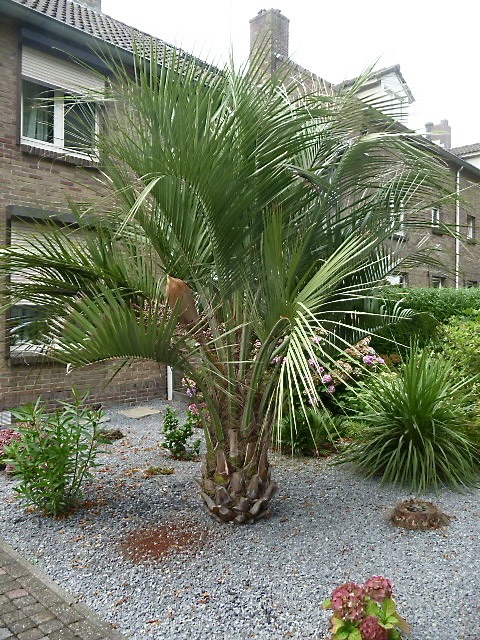Toen ik zij dat de butia toch beschermd moest worden bij strenge vorst zij hij daar niet over te peinzen, ik zit gehuurd en als ik weg ga moet de nieuwe bewoner dit maar overwegen...