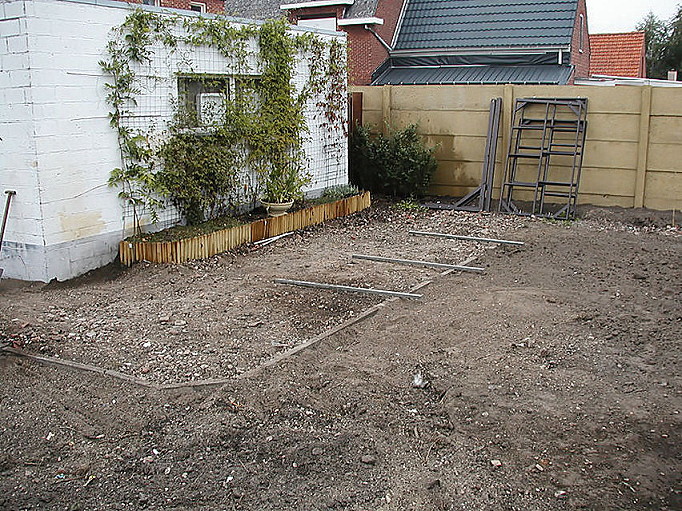 Hier enkele foto's van 2009 toen ik hier kwam wonen. Was toen keiharde grond met een dikke laag grind en nog van alles. Heb ik allemaal manueel gezeefd en terug gedeponeerd. Zit dus van alles in geel zand en zwart zand maar je ziet het groeit. Ik voeg wel elk jaar compost toe dus op termijn wordt de grond beter.
