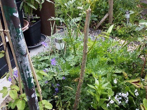 Dus samengevat moet ik veel meer hoogte hebben in mijn kleine tuin, heb diverse palen gezet voor klimplanten om dat al een beetje te versnellen.