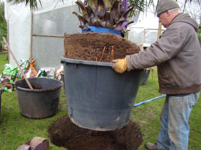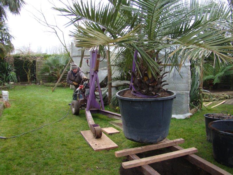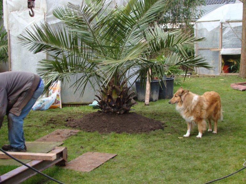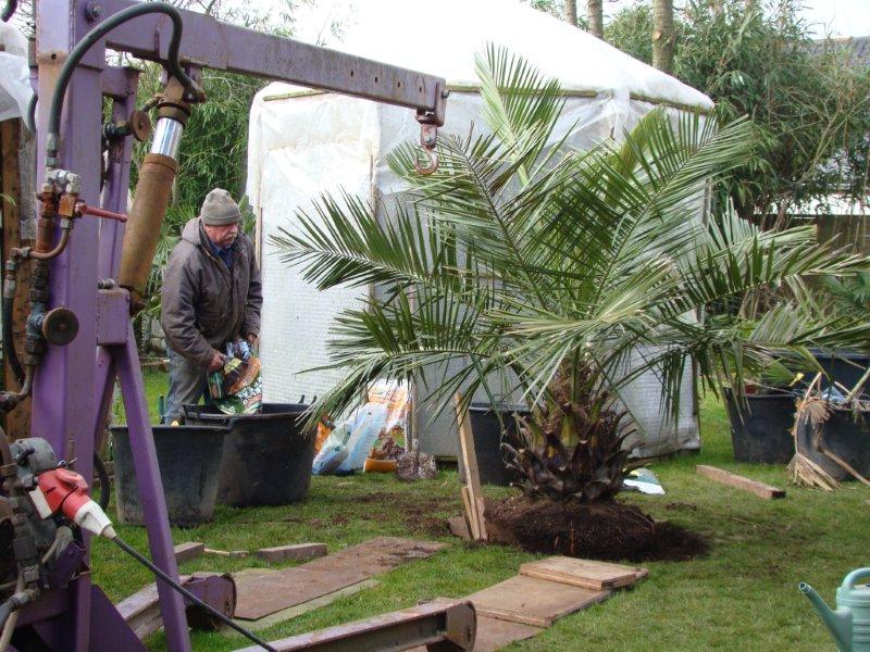 De jubaea is aangekocht bij Exotica in Herenthout. Ik had die vorig jaar al gezien, maar de toenmalige eigenaar kon hem niet meer brengen. Dirk, de huidige eigenaar geeft wel deze service, dus hebben ze hem naar huis gebracht.