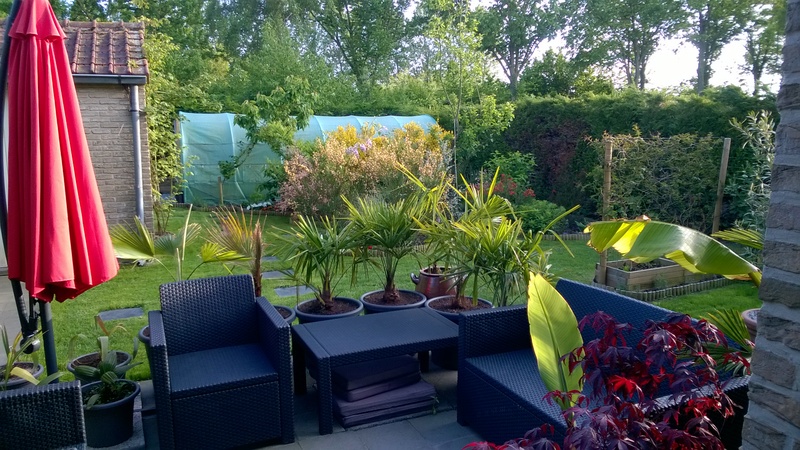 Alles (grotere) palmen heb ik opgepot in 50L potten. verder ga ik de bananen nog oppotten alles palmen uit de border gaan eruit mits ik wss volgend jaar rond deze tijd een huis koop. dan begint het nieuwe avontuur waar ik mij deze keer niet moet inhouden en alles in volle grond zal planten. Tips en vragen altijd welkom.